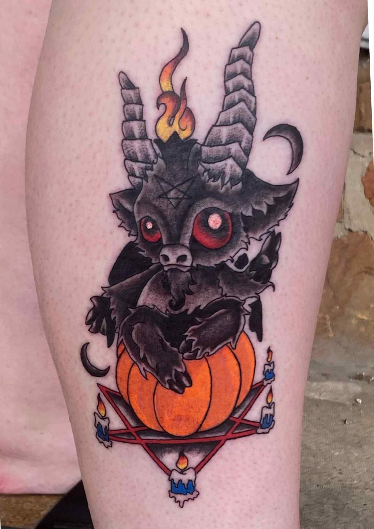 I’m into bold American traditional, dark and creepy tattoos, and gothic lettering—especially memorial pieces for loved ones and pets. Those are my passion projects.