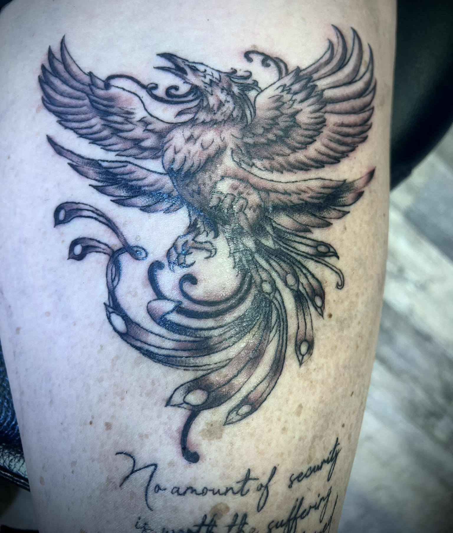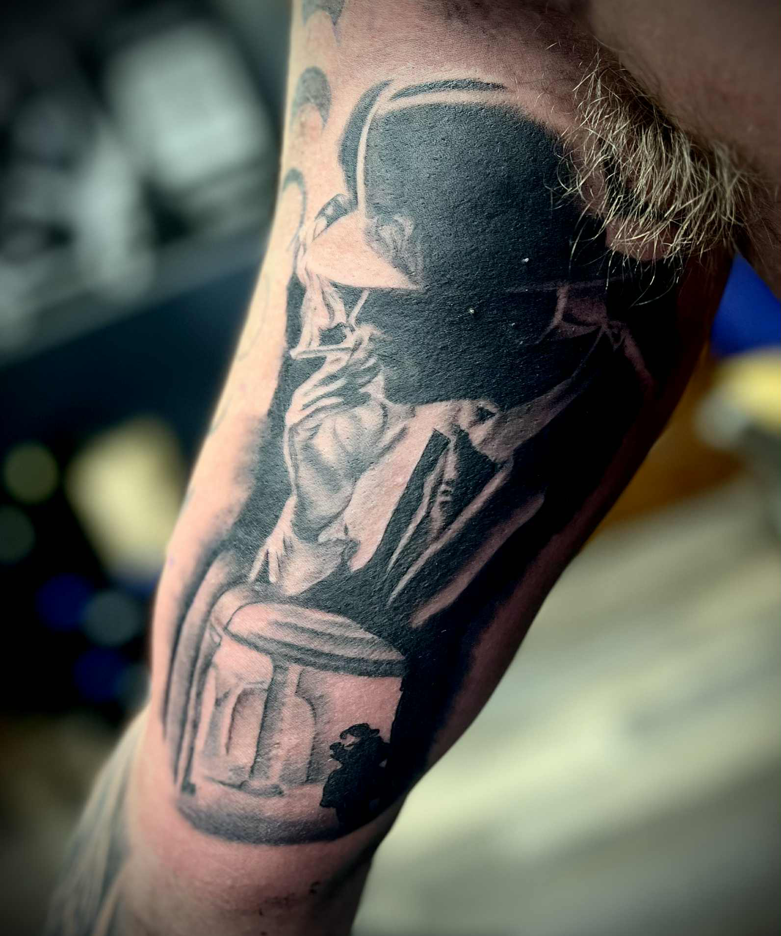 Just got this piece done by RHINO. Amazing experience and very light-handed for those who are looking to get their first tat. He is awesome and when ya butt gets numb, he gives u a chance to stretch ya legs lol. Thank you bro – this is one of the best gifts a man can get for his 30th.